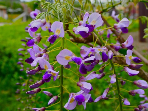 玄関側の鉢植えのフジが満開です。水をやっていたら禿げたオヤジがやって来て「ハスをあげる」と言う。個展前で忙しいし、変なヤツには関わりたくないので「いらん」と断ったら、「普通のピンクではなく、こんなんだよ」と写真を見せつけられた。3種類あった。ワシにとっては珍しいものだ。でも鉢がないので「じゃあ、一種だけもらってやる」と言ったら、「作品を注文制作して欲しい」と言う。なるほどそういうことならハスは3種類もらうことに。