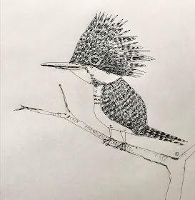 デカ頭!鹿の子模様!お!ヤマセミだ!久方ぶりに庭で発見